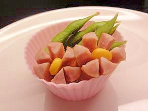 簡単 時短 お弁当 レンジde唐揚げ甘い玉子焼き竹輪noカニカマ詰め飾り切り簡単花ウィンナー 花ハムきのこのバター醤油トマトカップinガチャピン串刺し枝豆ムックver 愛 Snapdish スナップディッシュ Id eaha